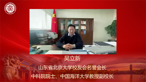 山東北大校友會名譽會長、中科院院士、中國海洋大學副校長吳立新院士因工作原因未能參會,也發(fā)來情真意切的視頻賀詞。吳立新給校友們送上新春祝福,對校友會的辛勤付出和杰出貢獻表示感謝,并鼓勵大家弘揚無私奉獻的北大精神,為中華民族的偉大復興貢獻一份力量。